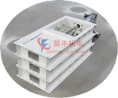 ◆用于控制物料進出,采用氣缸推動連桿,連桿帶動閘門動作,操作方便;